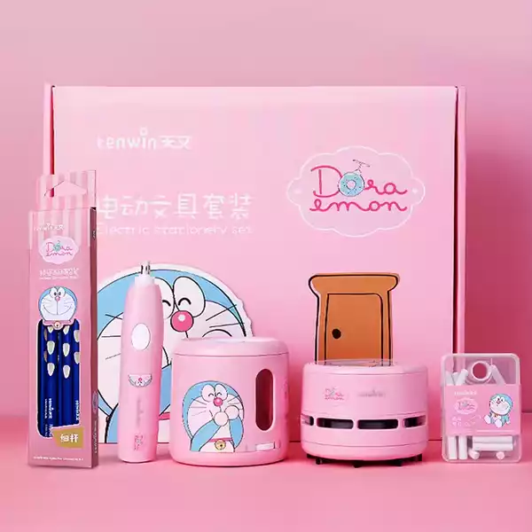 Sản phẩm với đầy đủ các dụng cụ cần thiết như gọt bút chì tự động, gôm tẩy, bút tẩy, máy hút rác mini cùng với hộp đựng, các dụng cụ cực kì an toàn và dễ sử dụng